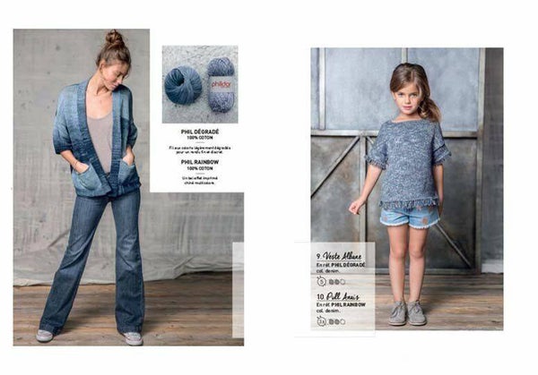 Phildar boek 684 denim mania met breipatronen voor dames, heren en kinderkleding.